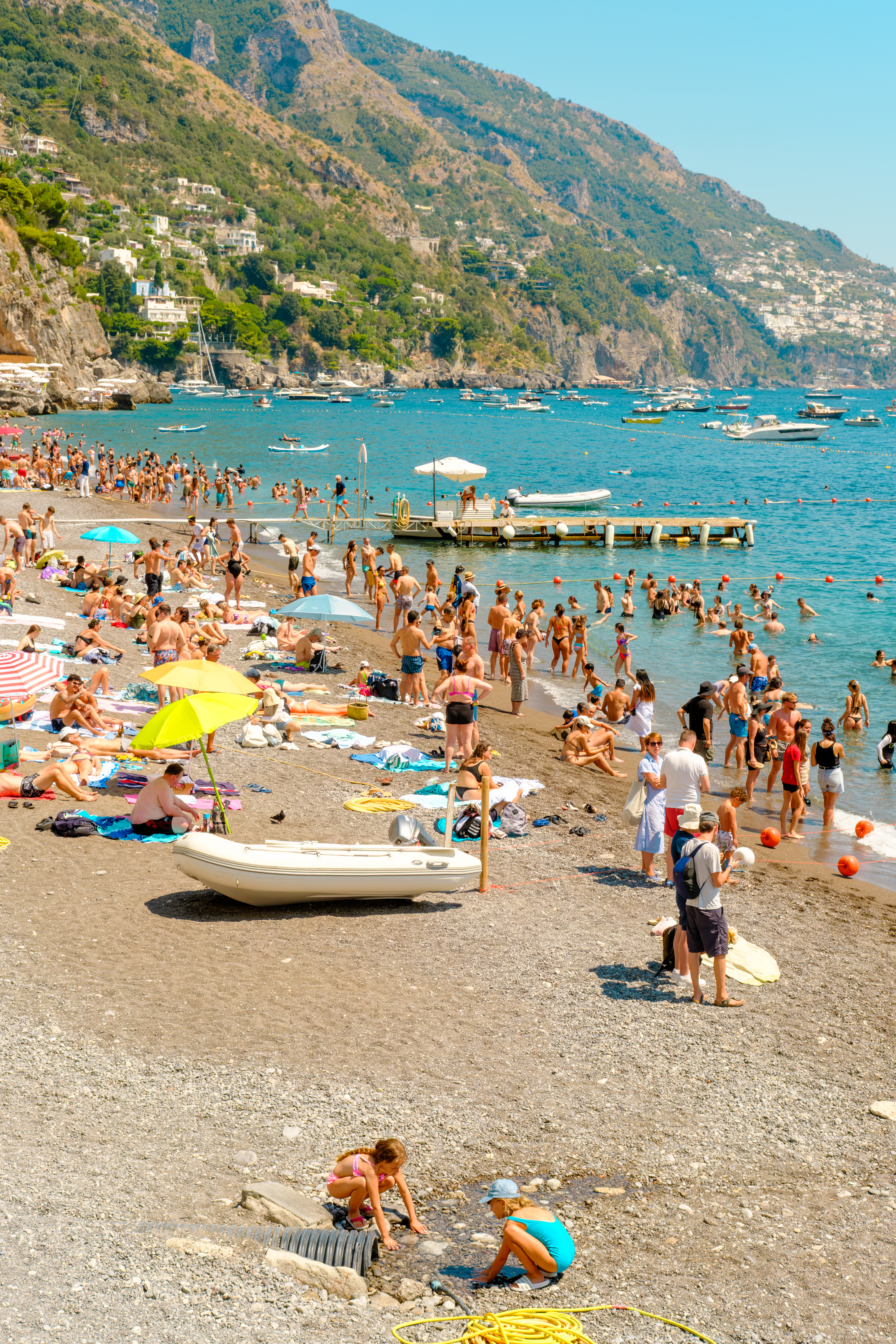 거리를 따라 걷다 보면 자연스럽게 포지타노에서 가장 눈에 띄는 큰 해변인 스피아자 그란데 해변(Spiaggia Grande)에 도착한다. 사실 해변이 막 크지는 않기는 한데, 일단 이 지역에서 가장 큰 것은 맞다. 그렇다 보니 사람이 정말 엄청나게 많은 편. 개인적으로 사람이 너무 많은 해변을 좋아하지 않기에 그렇게 마음에 들지는 않았다. 그래도 워낙 물 색도 이쁘고 여름이기도 하다 보니 바다 보는 재미는 확실하게 있다. 이와 별개로 유럽은 확실히 유럽인게, 해변에서 사람들이 훨씬 자유로운 듯.