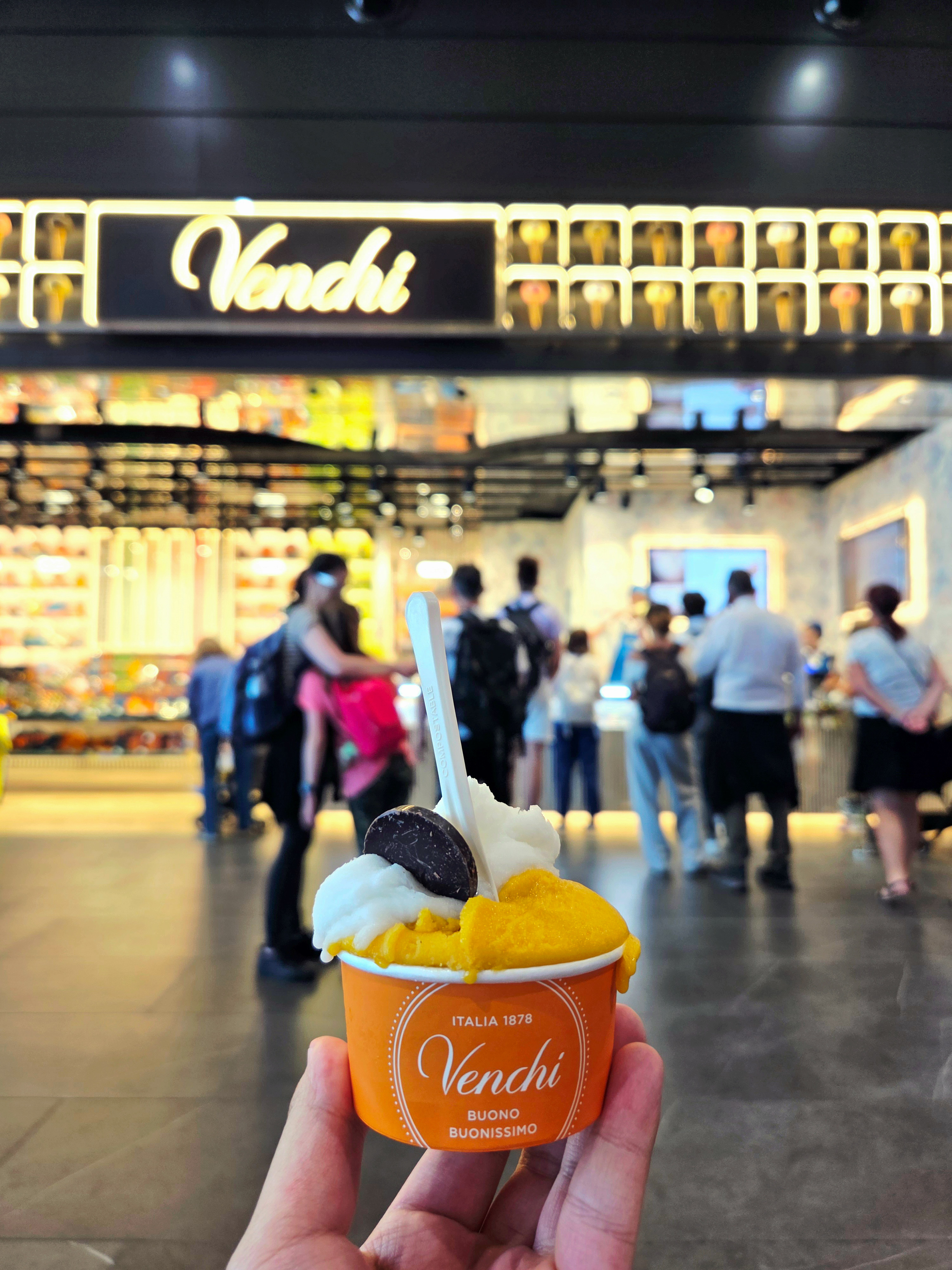 아무튼 우여곡절 끝에 공항 도착. 수하물이 없어 무난하게 면세구역으로 들어왔는데 진 마레의 시음행사가 진행 중이었다. 일반형이 아닌 Capri였는데, 일반형에 베르가못과 레몬이 추가된 버전이라 시트러스가 상당히 강한 편이었다. 개인적으로 강한 시트러스를 좋아하기에 아주 좋았다. 이후 시간이 좀 남길래 Venchi에서 마지막 젤라또를 먹었다. 공항치고는 싼 편인 듯.