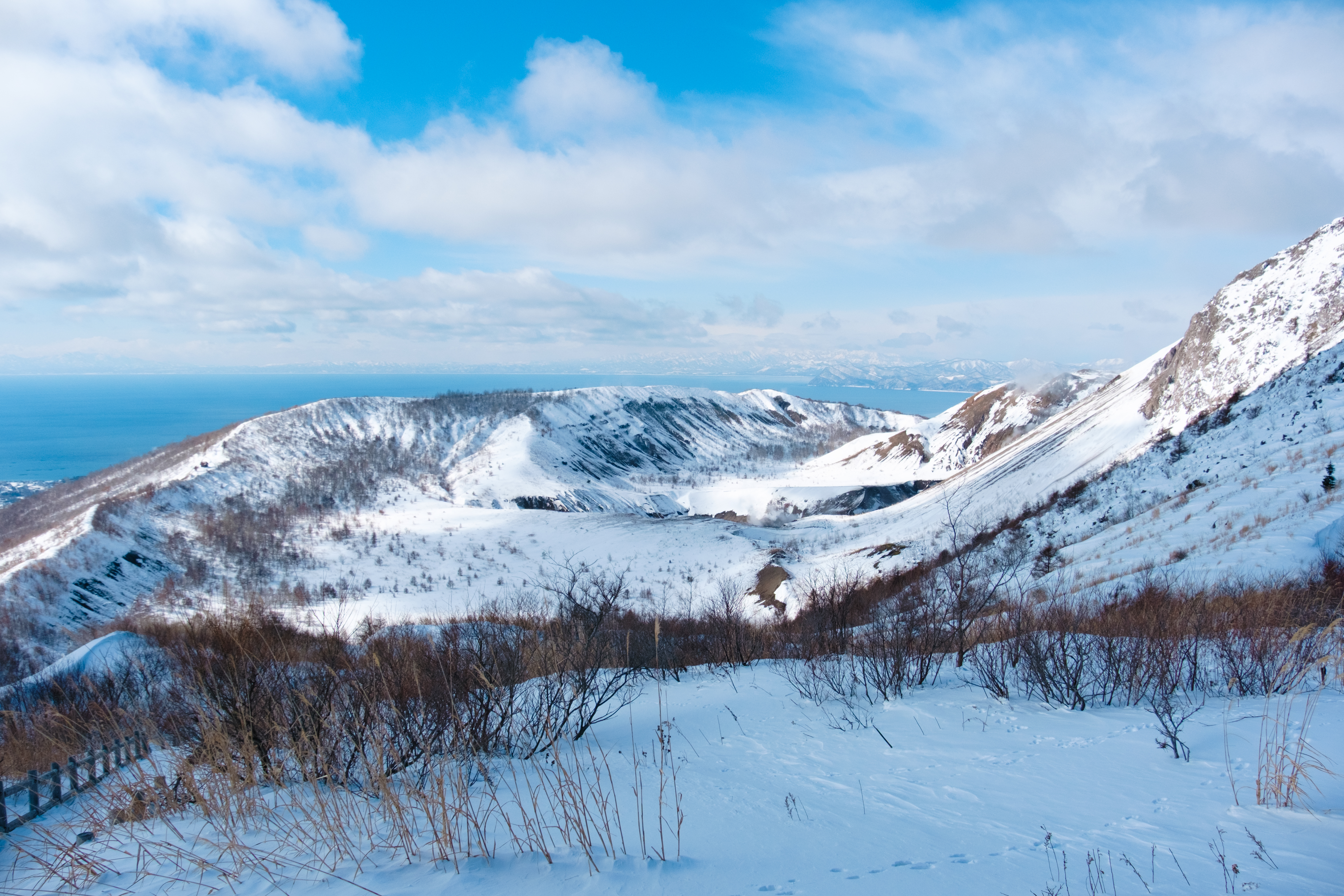 우스잔 화구에서 쇼와신잔과 마찬가지로 연기가 나오는게 인상적이었다. 역시 활화산은 활화산이다 싶었다. 다만 원래는 화구 주변을 둘러볼 수 있는 코스가 있는데 겨울이라 통행금지가 된 것이 아쉬울 따름이다. 그래도 경치는 좋았다.
