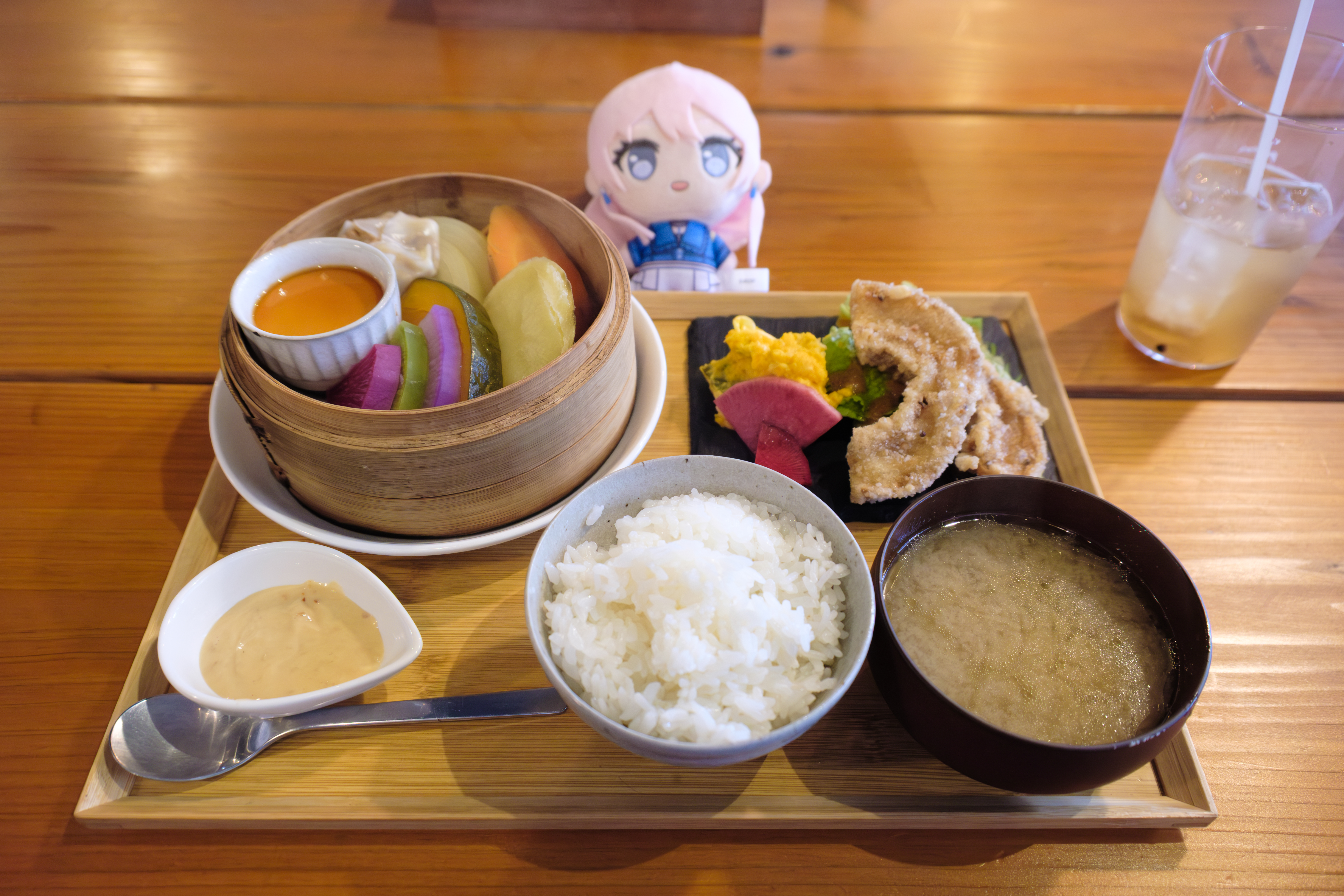 그렇게 버스를 타고 다시 토야호 온천으로 돌아와 점심을 먹으러 이동. 메구리야(めぐりや, 타베로그 3.05)에서 먹었다. 생긴지 얼마 되지 않아 리뷰가 적은 편이다. 보니까 대표 메뉴는 사슴 고기를 사용한 요리와 야채 정식 정도인 것 같았는데, 추천은 후자인 것 같아 그걸로 시켰다. 다양한 종류의 채소가 찜과 튀김, 샐러드 등의 조리법으로 나와 새롭게 즐길 수 있는 느낌의 정식이었고, 다른 건 평범했는데 저 튀김이 매우 맛있었다. 뭔 채소인지는 잘 모르겠으나 아무튼 간이나 질감 등 아주 좋았다.